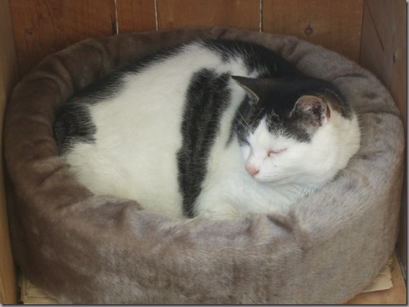 Det ble en lykkelig slutt også for Pus dette. Dagen etter jeg leverte den andre katten, kom hun tuslende hjem og slo seg til ro igjen. Ny seng har hun også fått, den gamle hulen fikk kattehjemmet, de kunne desinfisere og vaske den.